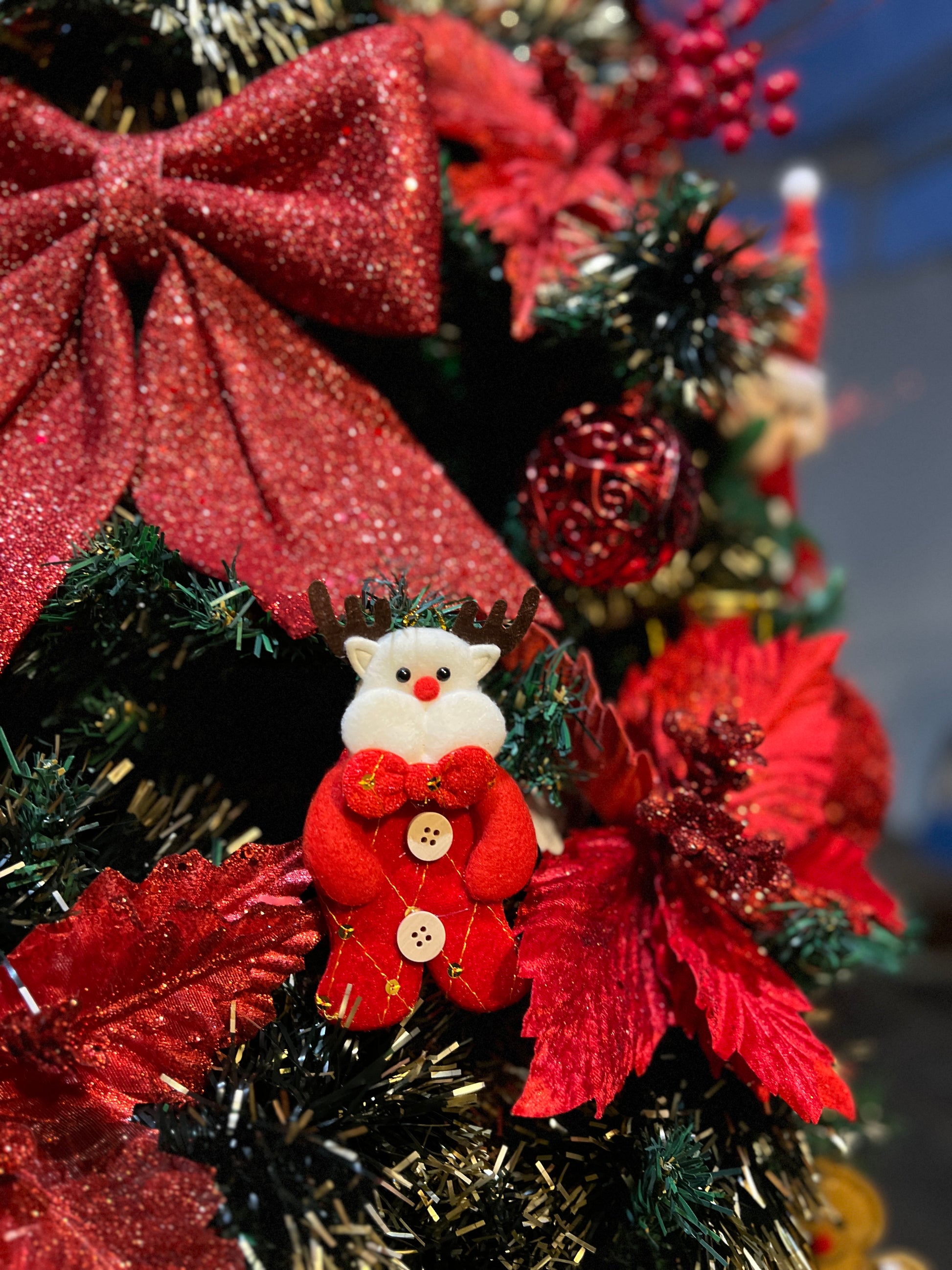 Combinando o charme do vermelho tradicional, o brilho sofisticado e a harmonia perfeita entre laços, flores e elementos natalinos, este modelo traz a verdadeira magia das festas direto para a sua sala — sem esforço, sem montagem complicada e sem gastar uma fortuna.