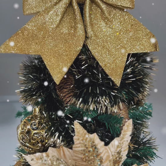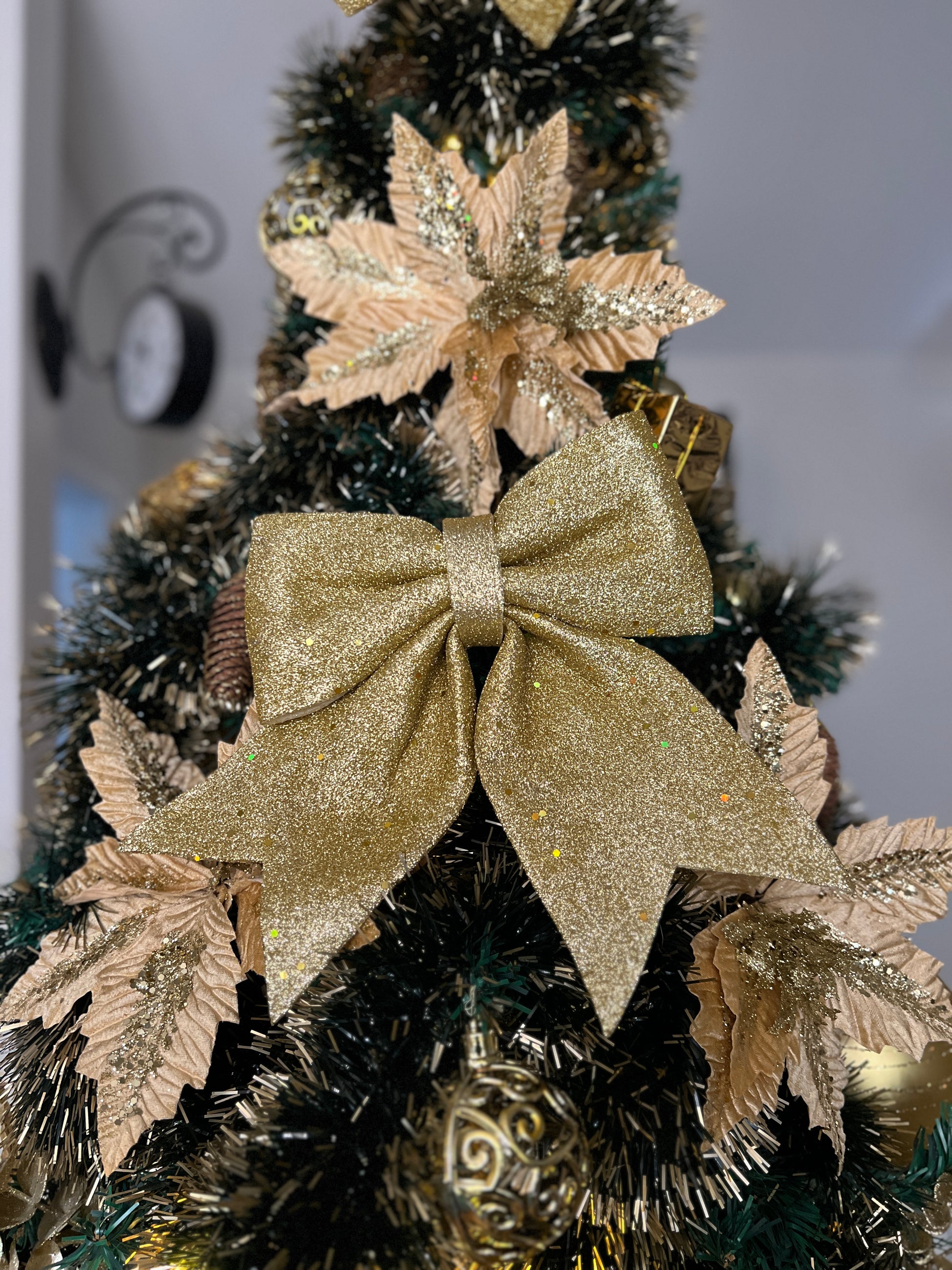 Você recebe a árvore + todos os enfeites + laços + flores + detalhes + luzes como brinde — tudo combinado de forma harmônica.